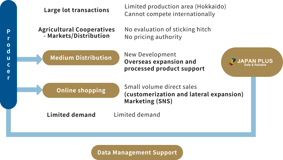 Developing a domestic and international network of primary products plus processed products, including substandard products, in support of sustainable agriculture.